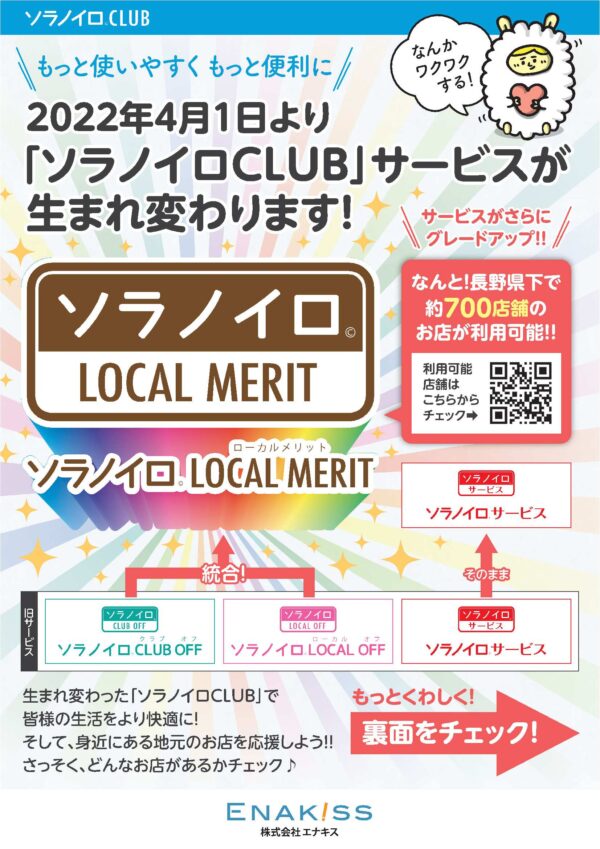 2022年4月1日よりソラノイロCLUBサービスがさらにグレードアップして生まれ変わりました! みなさまの生活をより快適に!そして身近にある地元のお店を応援しよう!