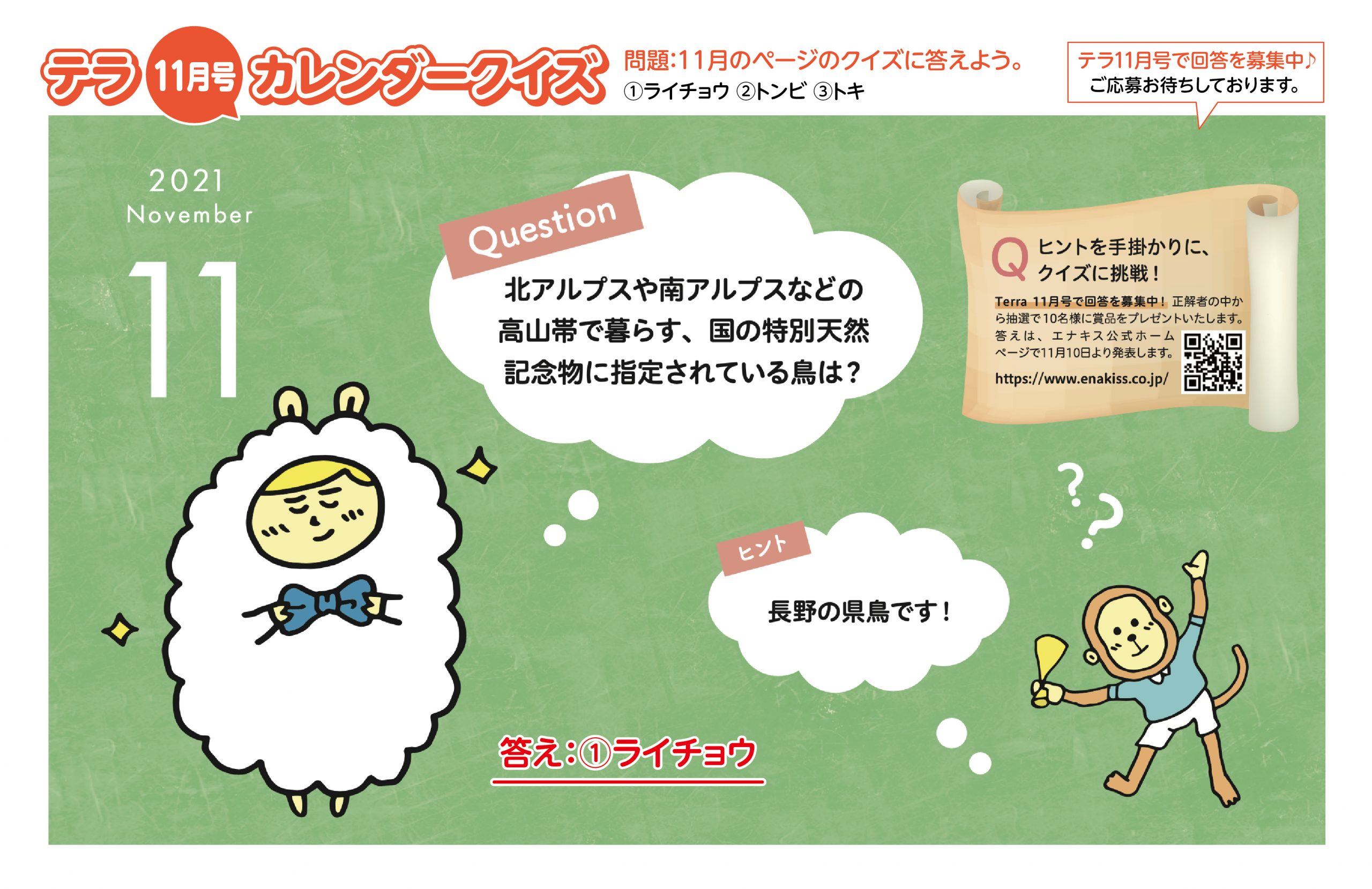 テラ11月号のカレンダークイズの正解を発表します!