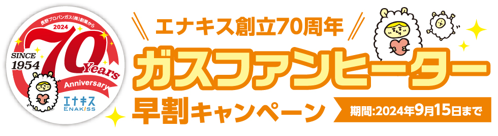 エナキス創立70周年!ガスファンヒーター早割キャンペーン