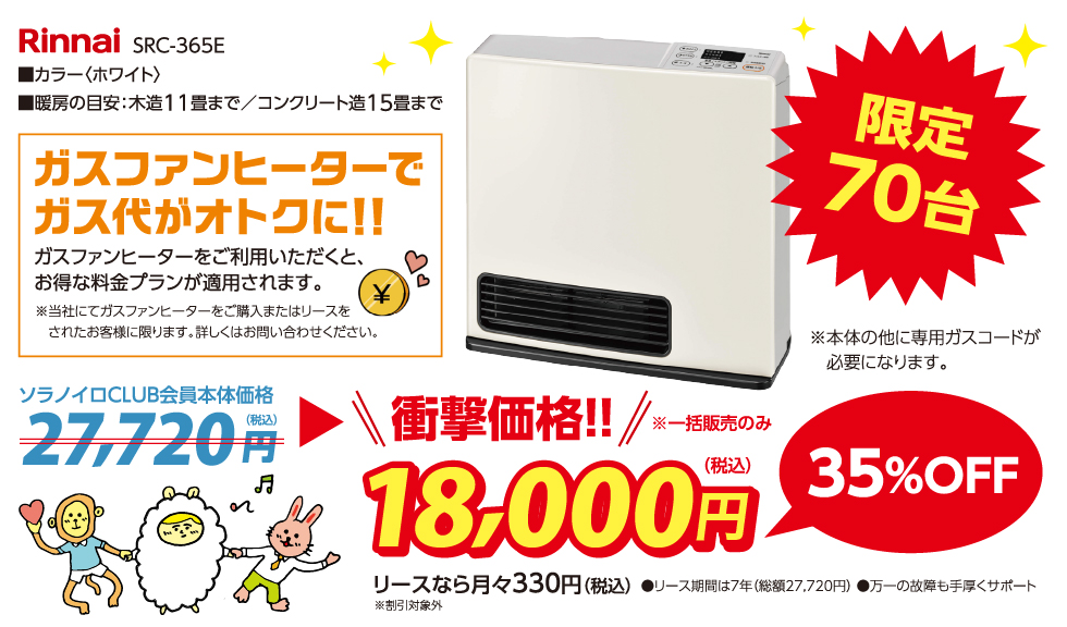 ※当社にてガスファンヒーターをご購入またはリースをされたお客様に限ります。詳しくはお問い合わせください。