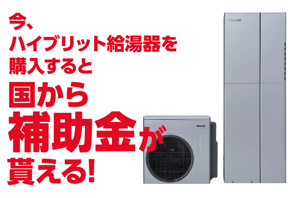 今、ハイブリット給湯器を購入すると国から補助金が貰える!