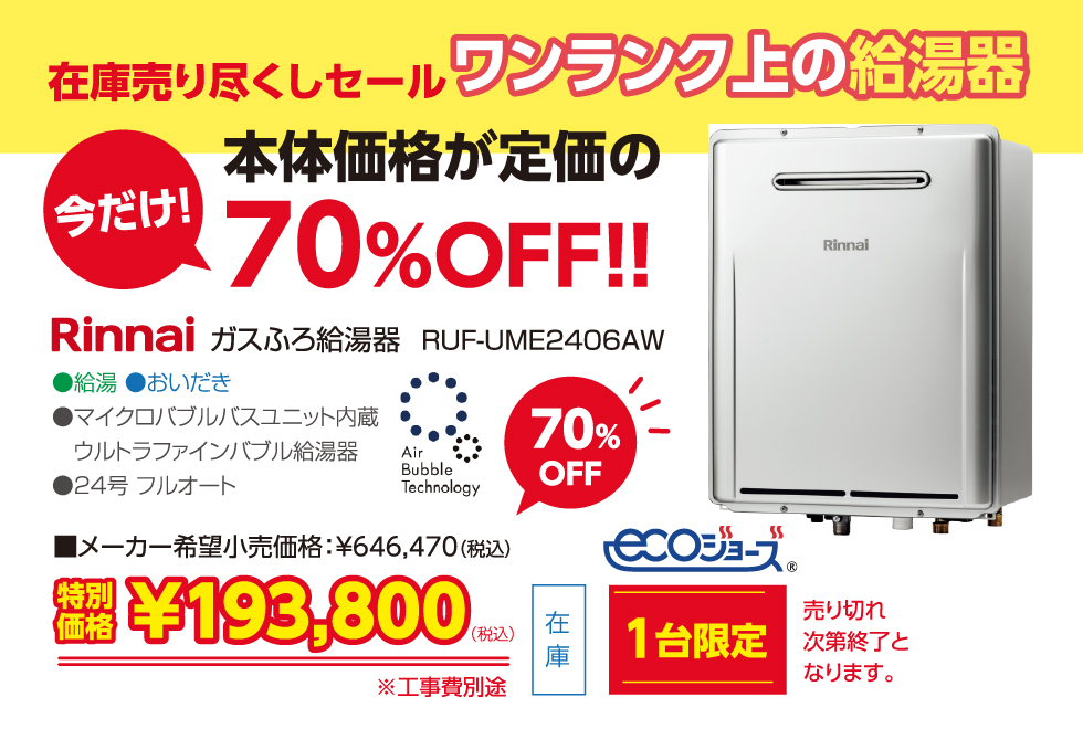 information|在庫売り尽くしセール!ワンランク上の給湯器