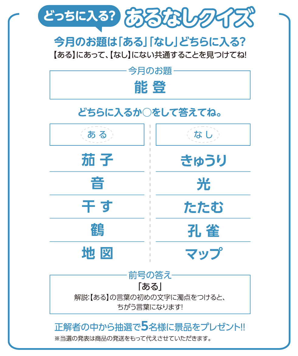 今月のお題は「ある」「なし」どちらに入る?