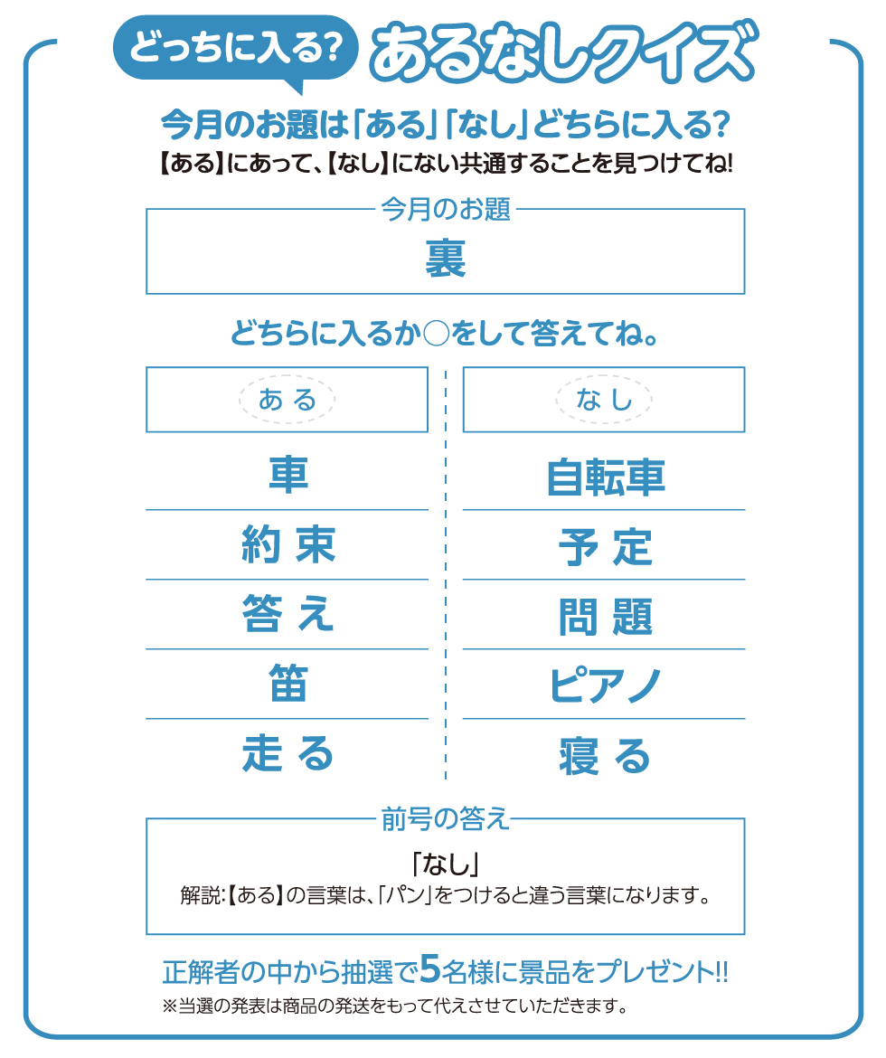 【ある】にあって、【なし】にない共通することを見つけてね!