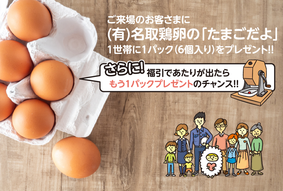 ご来場のお客さまに(有)名取鶏卵の「たまごだよ」1世帯に1パック(6個入り)をプレゼント!!