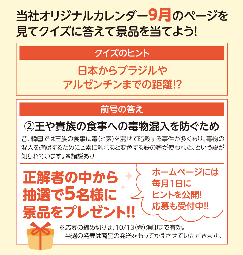 当社オリジナルカレンダー9月のページを見て、クイズに答えて景品を当てよう!