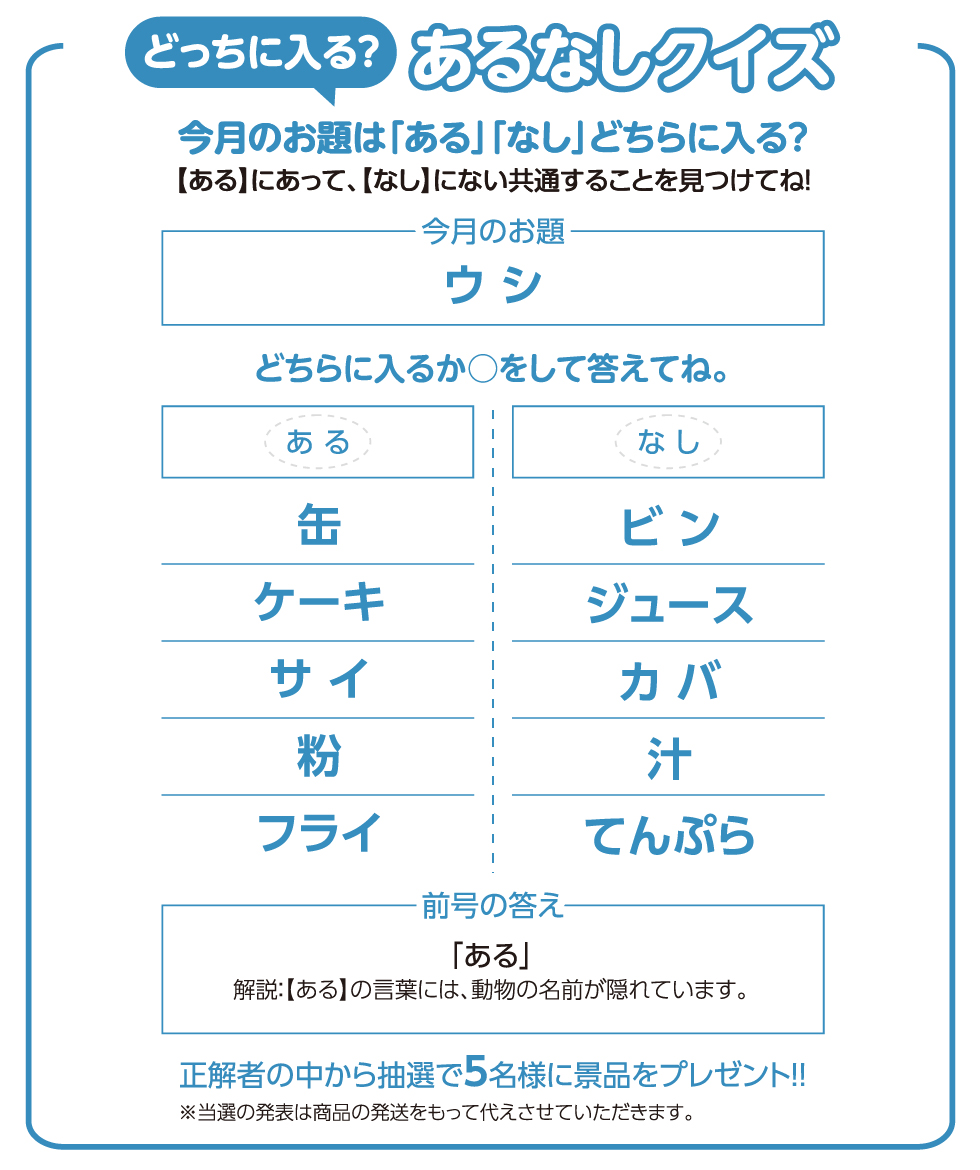 正解者の中から抽選で5名様に景品をプレゼント!!