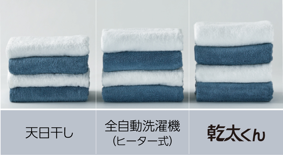80℃以上の温風で乾燥する「乾太くん」なら、生乾き臭の元となる「モラクセラ菌」の発育を抑制し、外干しや日光消毒でも除去できないニオイを取り除きます。