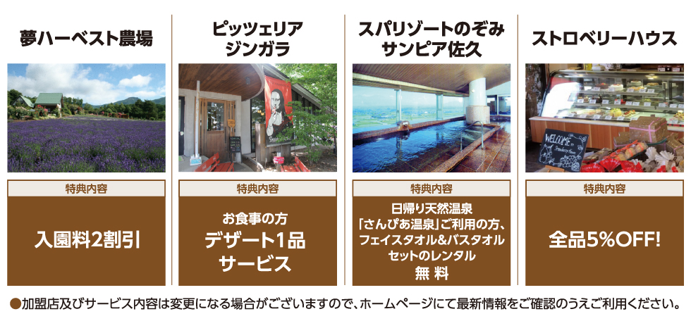 ※加盟店及びサービス内容は変更になる場合がございますので、ホームページにて最新情報をご確認のうえご利用ください。