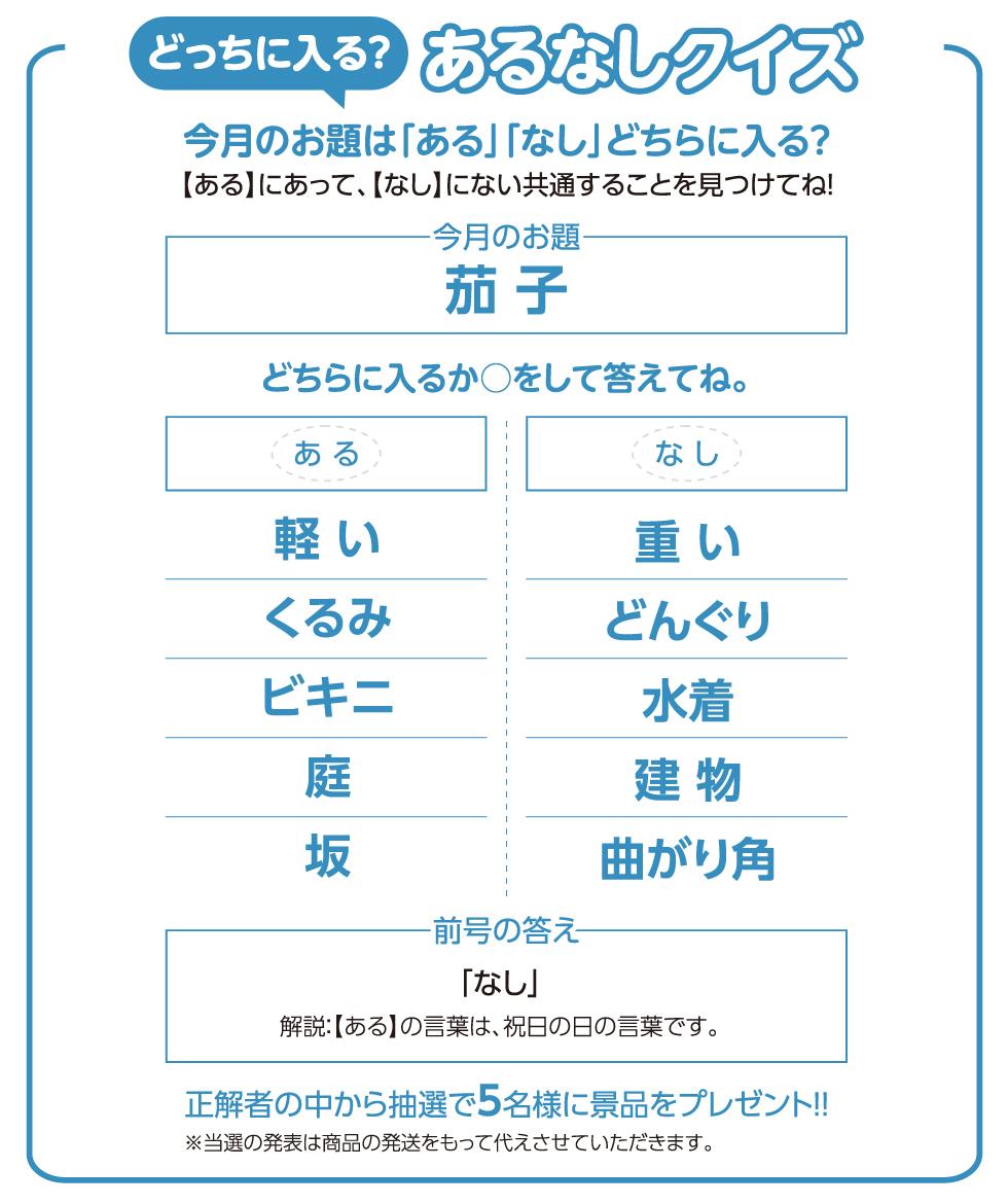 【ある】にあって、【なし】にない共通することを見つけてね!