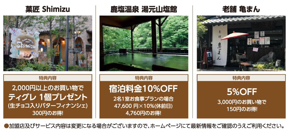 ※加盟店及びサービス内容は変更になる場合がございますので、ホームページにて最新情報をご確認のうえご利用ください。