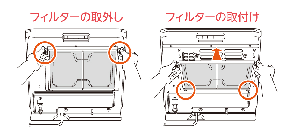 ※本体とエアフィルターを掃除する際は、酸やアルカリ洗剤、ベンジン、シンナーなどは絶対に使用しないでください。変色・変形・破損の原因になります。
