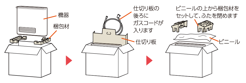 ⑥お買い上げの際の段ボールに正しく入れ、直射日光のあたる場所や高温になる場所を避け、保管する。