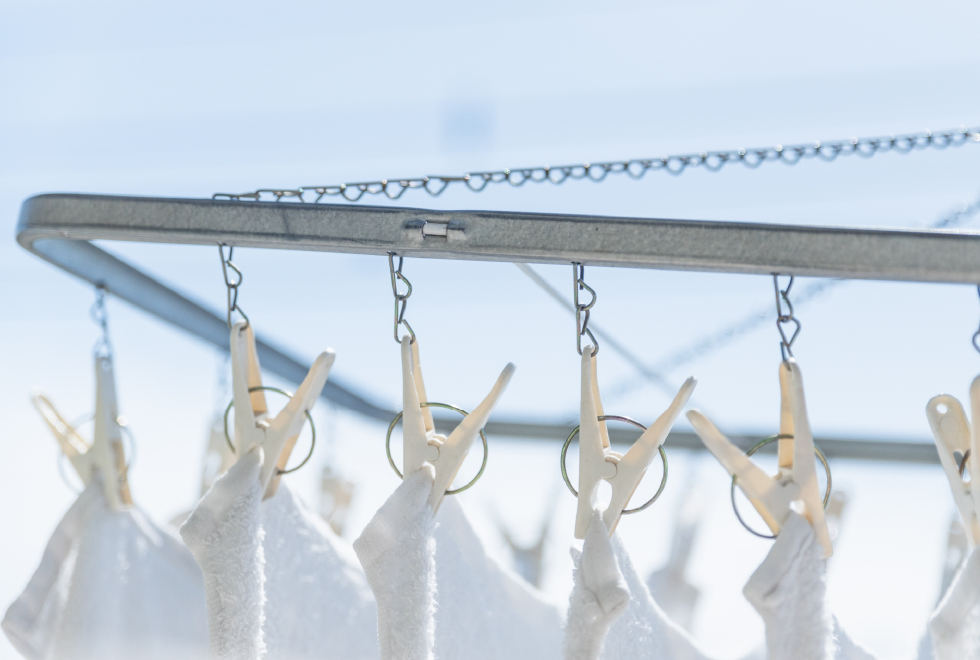 せっかく花粉を落とした体に外干しで花粉が付着したタオルで体を拭いたら意味がないですよね。花粉の時期は室内干しや衣類乾燥機で乾かしたタオルを使用しましょう。