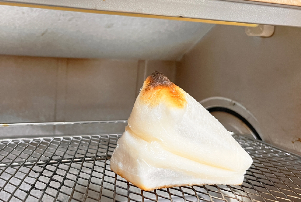 ①餅を焦げ目がついて柔らかくなるまで焼く。
