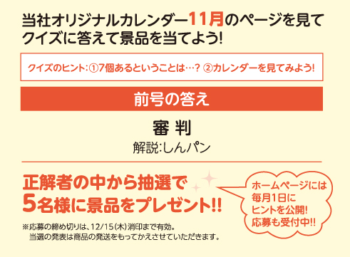 当社オリジナルカレンダー11月のページを見て、クイズに答えて景品を当てよう!