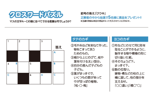 マスの文字A〜Cの順に並べてできる言葉は何でしょうか?