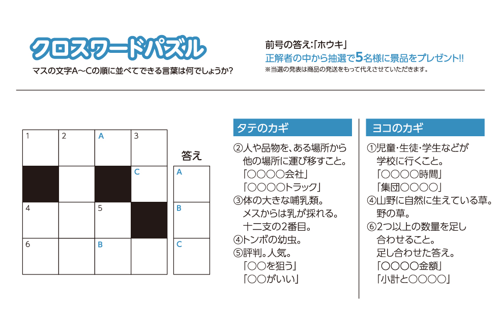 マスの文字A〜Cの順に並べてできる言葉は何でしょうか?