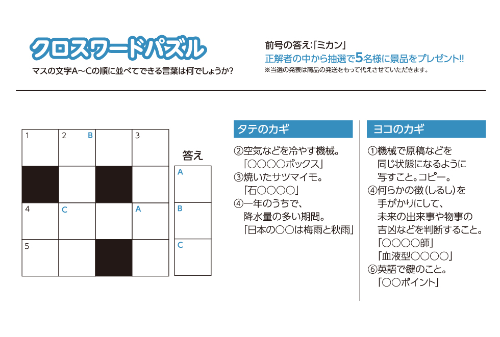 マスの文字A〜Cの順に並べてできる言葉は何でしょうか?