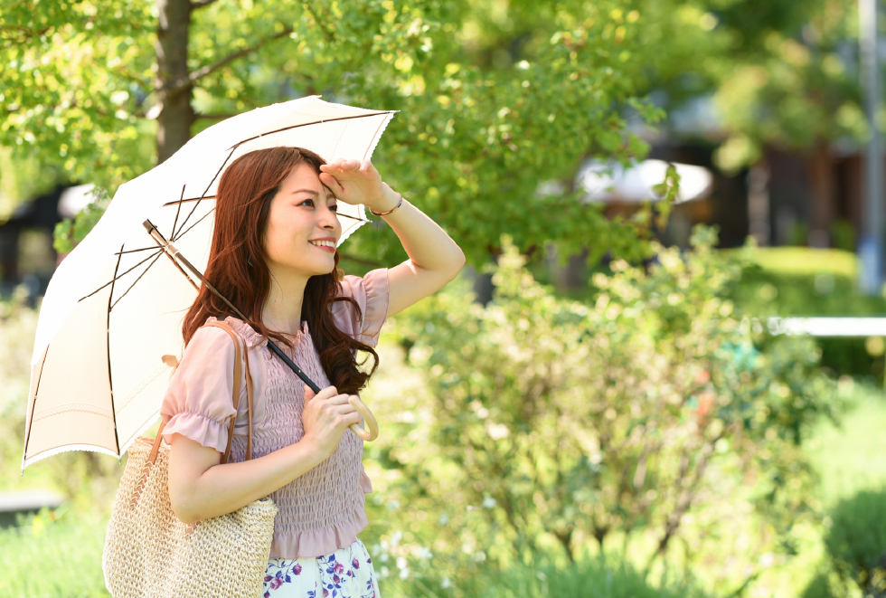 目から入る紫外線でも日やけはおこります。 サングラスやUVカットメガネ、帽子など無防備になる目にも紫外線対策をしましょう。