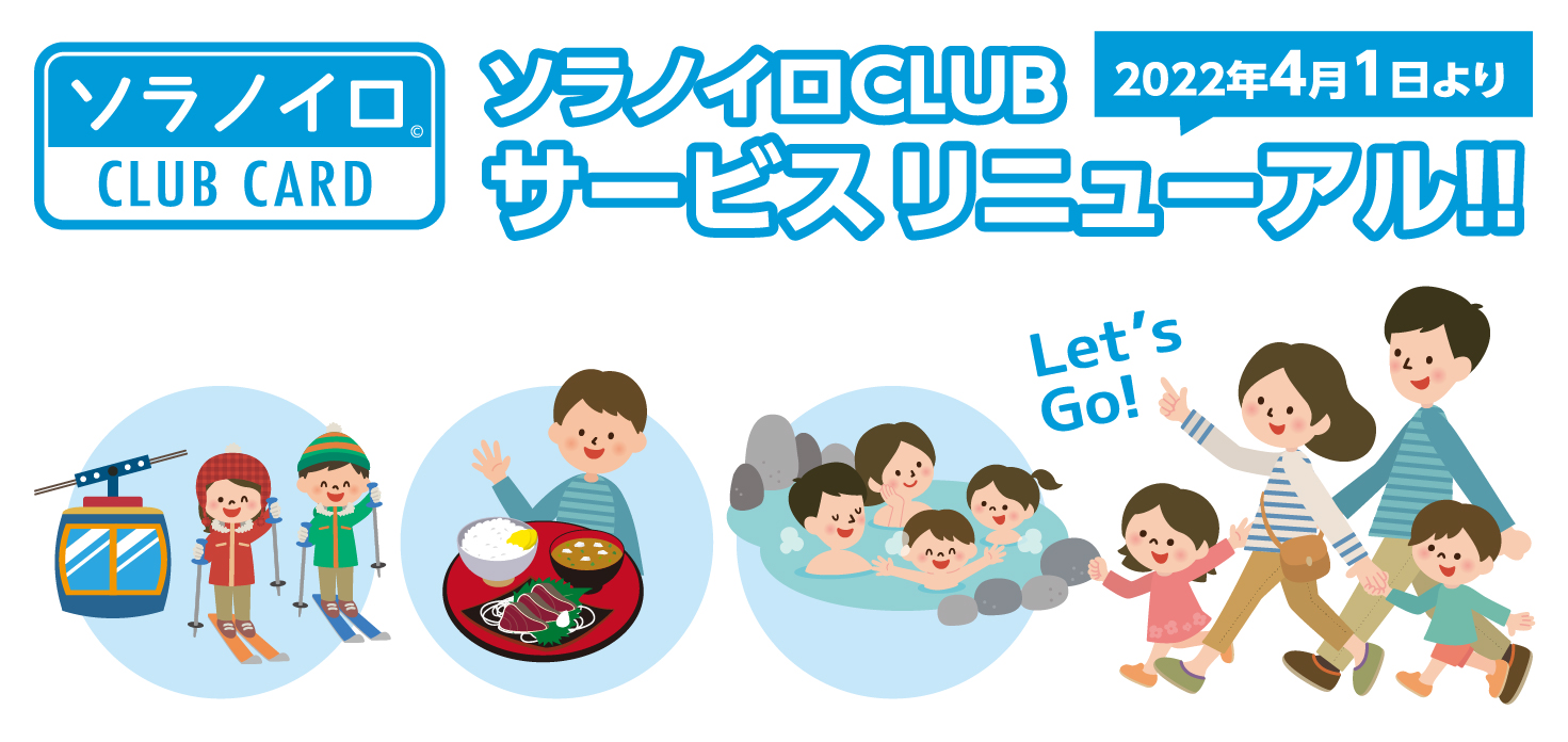 4月1日よりソラノイロCLUBの一部サービスがリニューアルいたします。現在、お客さまにもっと便利に、より多くのシーンでお使いいただくための準備をしています。詳細は後日お届けするソラノイロCLUBサービス変更のご案内と、テラ4月号をご覧ください!