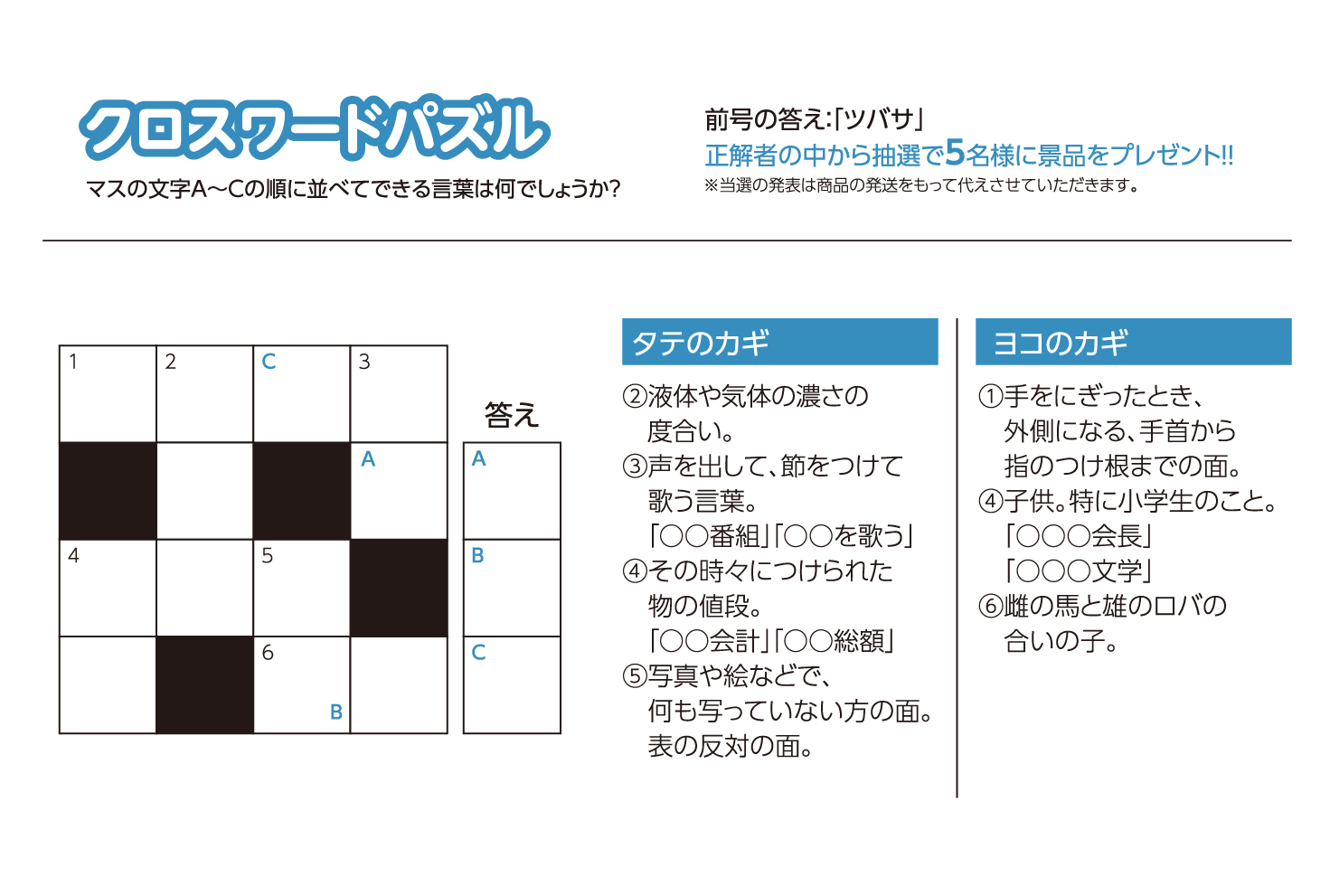 いつも楽しみに読んでおります。9つのキーワードも集めて、ぜひ景品をGETしたいと思います。(^‿^)(塩尻市 K.Aさま)