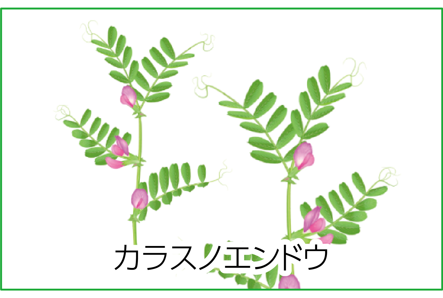 淡いピンク色の花が特徴的なソラマメ科の植物。とてもきれいな黄緑色の若芽をつけます。ちなみに、天ぷらにすることもできるのだそう。果実が熟すと真っ黒になり、カラスを連想させるため、この名が付いたと言われています。