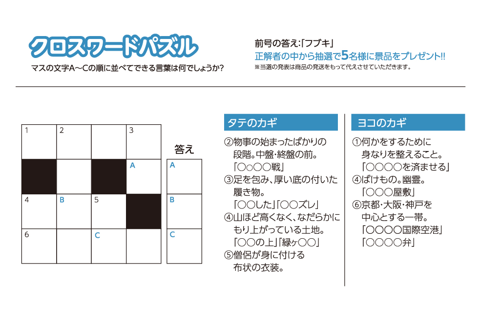 マスの文字A〜Cの順に並べてできる言葉は何でしょうか?