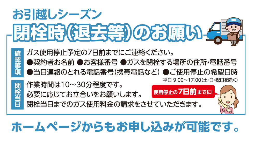トピックス|お引っ越しシーズン 閉栓時(退去等)のお願い